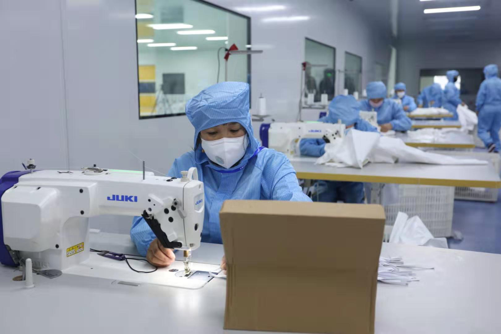 215日,j9国际站集团新引进的口罩生产线全力开动,正式出产医用口罩产品。据悉,该批5条生产线满负荷运转后,日产口罩约50万片。此前的24日,j9国际站集团联合晋江兴德织造有限公司启动了防护服生产,目前日均产能可达1000件。